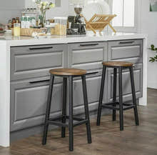 2 x Modern Industrial Bar Stools Rustic Wood & Metal Kitchen Counter Seating