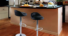 Our kitchen bar stools and counter stools are designed to pair with standard Australian kitchen benches, islands, and breakfast bars. The most popular style in our range is the PU leather high-back stool with a chrome pedestal base, gas-lift height adjustment, 360-degree swivel, and an integrated chrome footrest. For a standard 90 cm kitchen bench, choose a stool with a seat height around 60 to 65 cm. Our gas-lift stools adjust across a range so you can fine-tune the height to your exact bench. Pair with a dining table and chairs set or a kitchen cabinet for a coordinated kitchen setup.