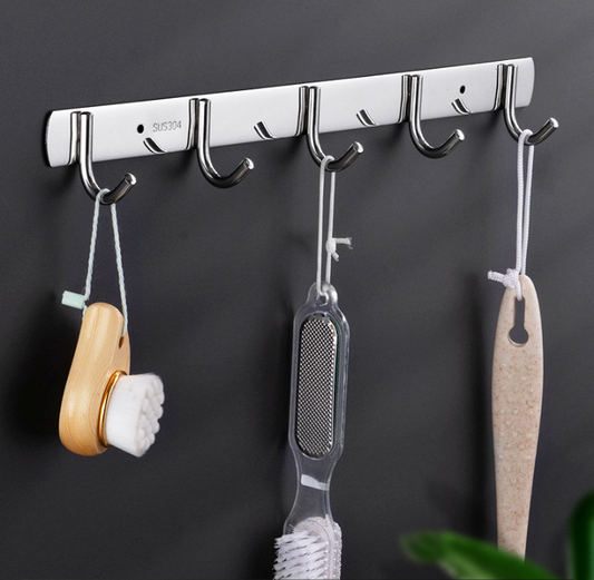 Heavy Duty Stainless Steel 5 Hook Rail Kitchen Bathroom Hanging Rack