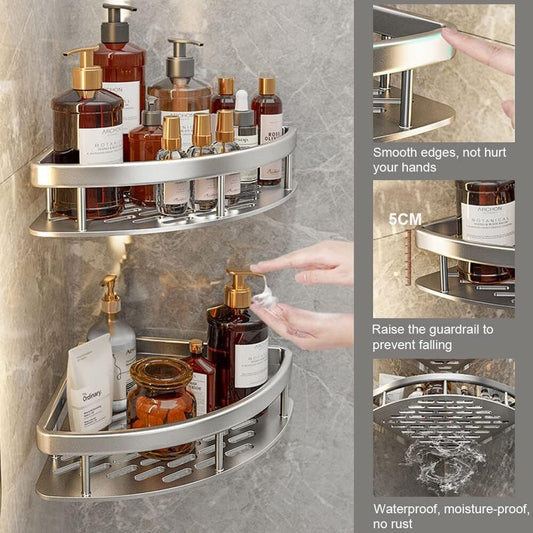 2 Piece Set Premium Aluminium Waterproof Corner Shower Shelf Bathroom Organiser