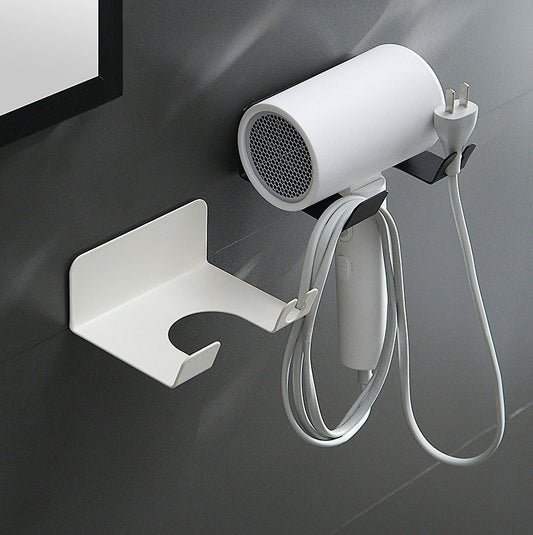 Steel Hair Dryer & Cord Holder Wall Mounted Hairdryer Bathroom Organiser Rack (Black)