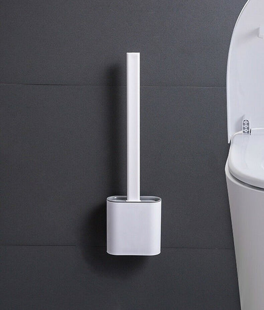 Revolutionary Wall Mounted Silicone Soft Flex Toilet Brush and Holder (White)