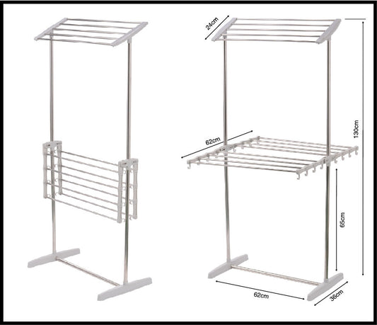 2-Tier Stainless Steel Clothes Airer Organizer Hanger Rack Towel Dryer