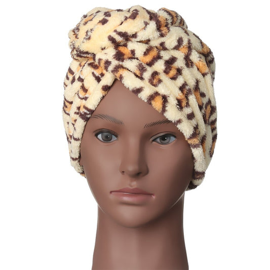 Fast Dry Microfiber Hair Drying Towel Turban Bath Head Wrap Hat Spa Cap (Leopard)
