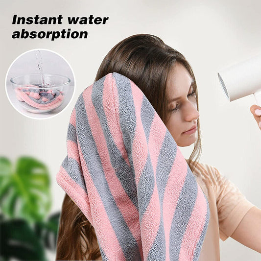 Fast Dry Microfiber Hair Drying Towel Turban Bath Head Wrap Hat Spa Cap (Striped)