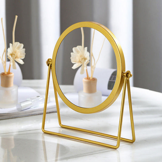 360-degree Rotating Dressing Makeup Vanity Cosmetic Tabletop Round Mirror (Gold)