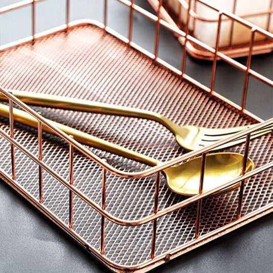 Luxe Metal Storage Basket Holder Container Desktop Organizer - Rose Gold