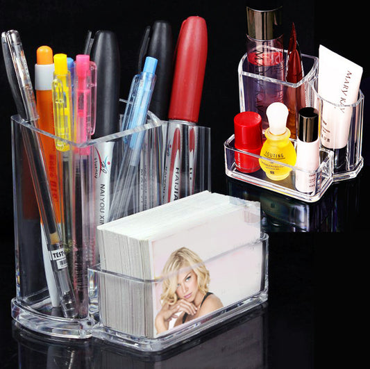 Multifunction Clear Acrylic Desk Organizer Pen Holder with Business Card Holder