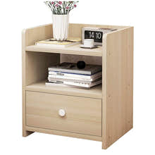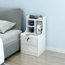 A compact bedside table with storage works well in small rooms. Choose a slim design with drawers or open shelves to keep things organised without taking up too much floor space.