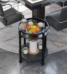 - Multi-use furniture – A TV table can double as a storage solution, while a kitchen shelf works well in multi-purpose rooms.
