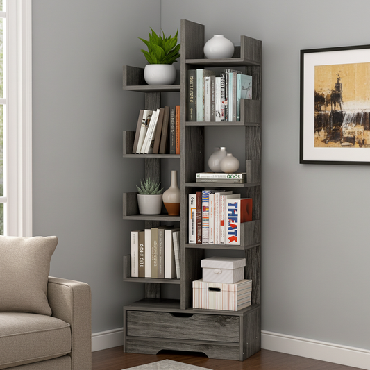 - Bookcases with drawers – Store items out of sight while keeping shelves tidy.
