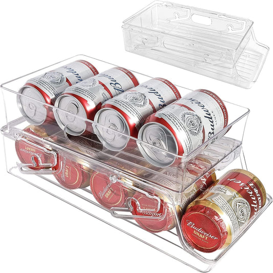 2-Tier Automatic Rolling Can Dispenser Beer Soda Bottle Storage Holder Fridge Organizer