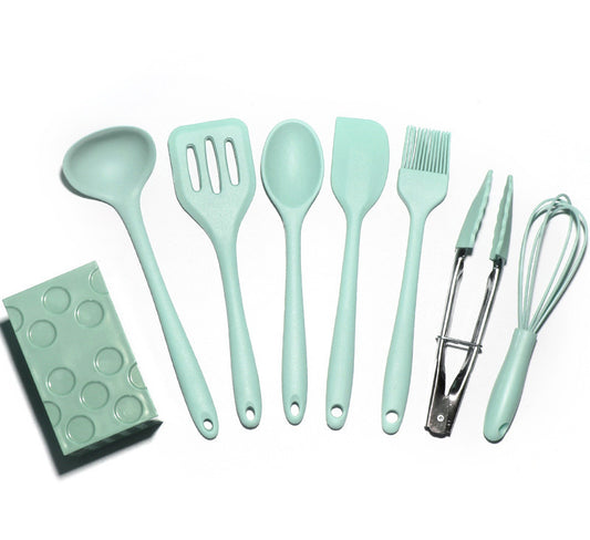 8PC Silicone Kitchen Cooking Utensil Set Non-stick Cookware Tools with Holder (Green)
