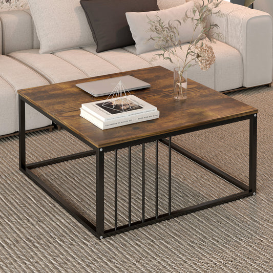 Urban Industrial Modern Rustic Wood and Metal Square Coffee Table