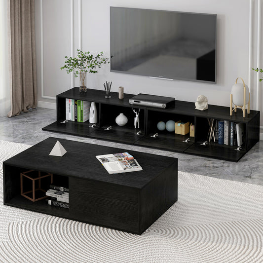 2-Piece Set Lusso Designer Wooden Coffee Table & 2.4m TV Cabinet (Black)