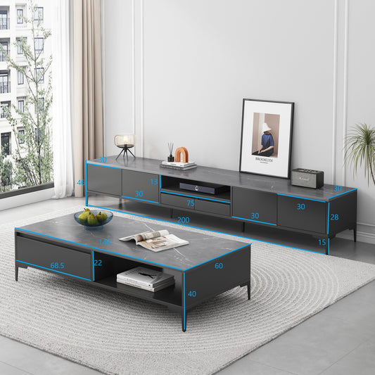 2-Piece Set Minimalist Large Coffee Table & 2m TV Cabinet