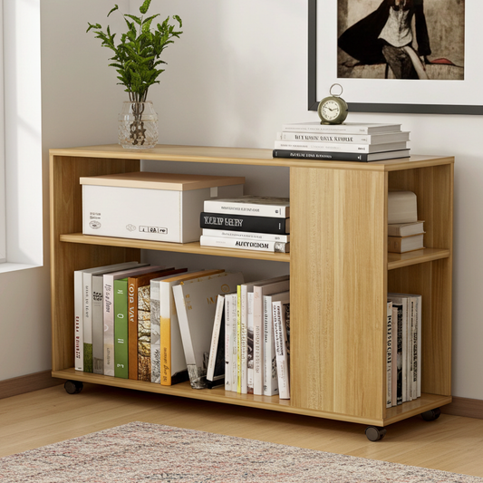 Versatile Sofa Side Table & Magazine Shelf with Casters (Oak)