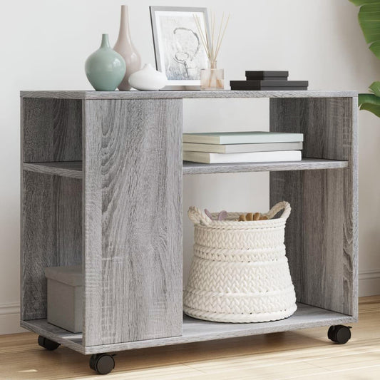 Versatile Sofa Side Table & Magazine Shelf with Casters (Driftwood Grey)