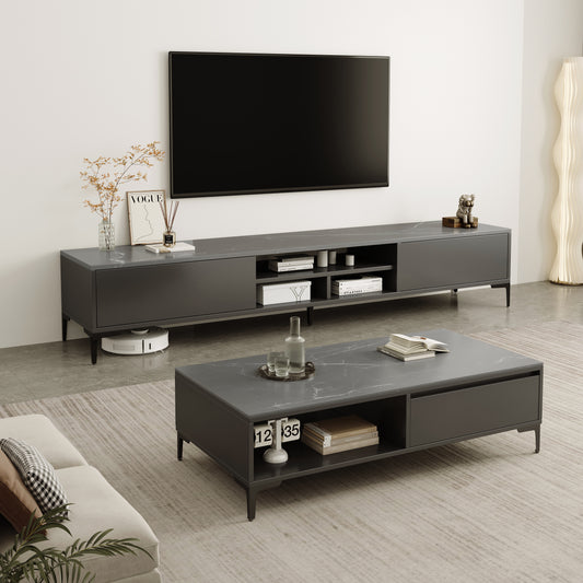 2-Piece Set Minimalist Large Coffee Table & TV Cabinet