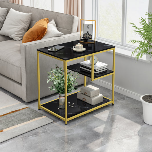 Synergy Luxury Marble Look Side Table Magazine Shelf (Black)