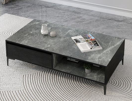 Synergy Lush Designer Marble Look Coffee Table (Black)