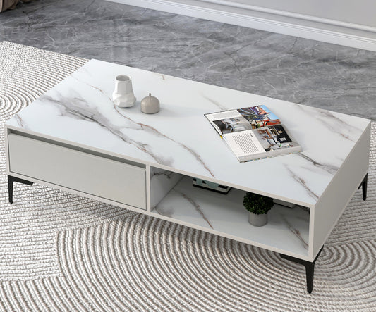 2-Piece Set Synergy Luxury Marble Look Coffee Table & TV Cabinet (White)