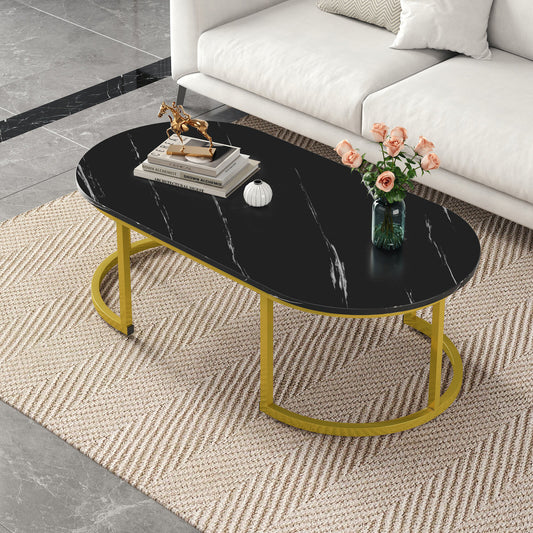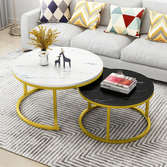 Synergy 2 In 1 Lush Marble Look Designer Nesting Coffee Tables (Black)