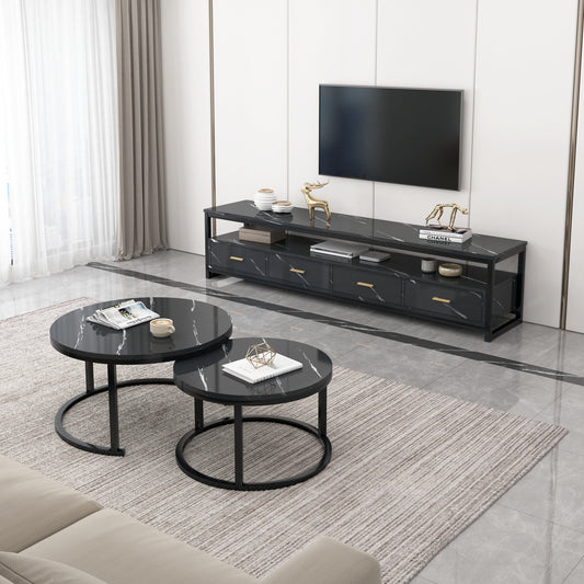 2-Piece Set Synergy Luxury Marble Look Coffee Table & TV Cabinet (Black)