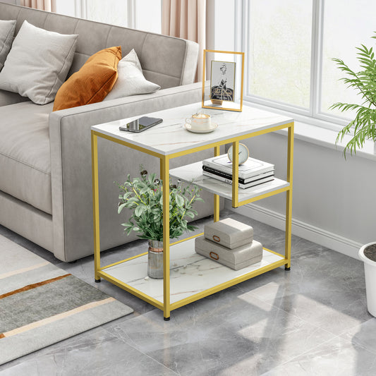 Synergy Luxury Marble Look Side Table Magazine Shelf (White)