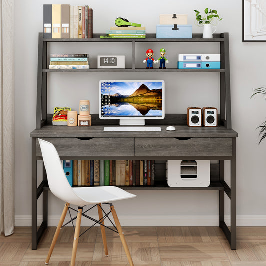 A computer desk with shelves makes it easy to keep everything in order. Books, files, tech gadgets—whatever you need, built-in shelving helps you organise your space without clutter. Choose a desk with shelves for extra storage or a minimalist design to keep things simple.