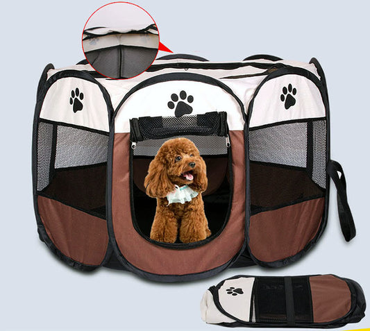 Portable Foldable Pet Dog Cat Playpen (Medium, Chocolate & Cream)