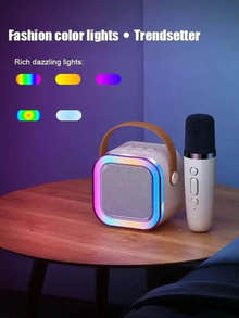 Dual Wireless Microphone Bluetooth Karaoke Speaker Machine with LED Lights