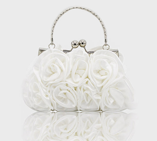 Deluxe Rose Ladies Event Evening Purse Bag (White)