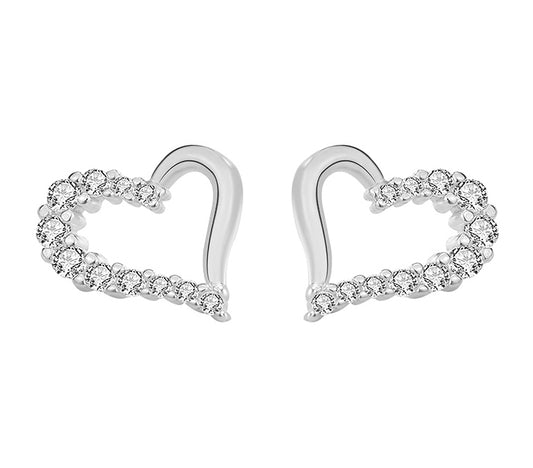 Elegant Heart-Shaped Sterling Silver S925 Earrings with Cubic Zirconia Diamonds