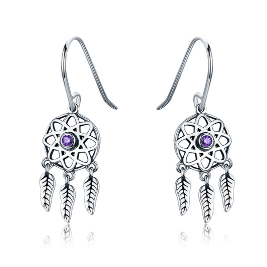 S925 Sterling Silver Dream Catcher Dangle Earrings