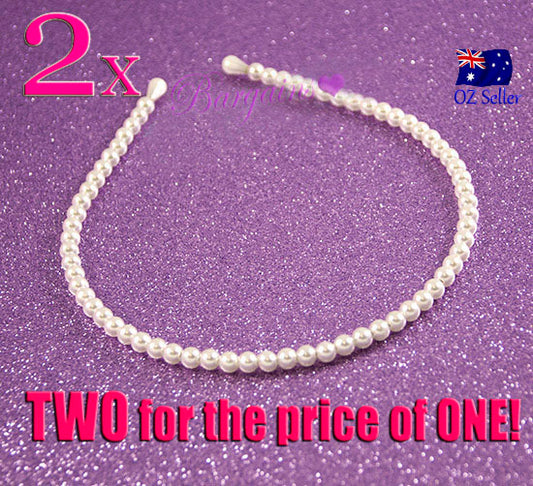 2 x Faux Pearl Beads Hairband Alice Tiara Hair Band
