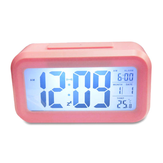 Multifunction Digital Sensor Automatic Light Snooze Desk Alarm Clock (Pink)