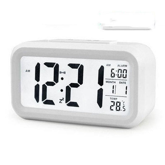 Multifunction Digital Sensor Automatic Light Snooze Desk Alarm Clock (White)