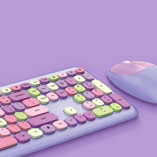 Deluxe Colourful Wireless Mechanical Keyboard and Mouse Combo Set (Purple Mixed)