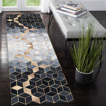 A hallway runner protects floors in high-traffic corridors while adding colour and pattern to narrow spaces. Chevron and striped patterns create visual length down the hallway. Our geometric runners stay flat on hard floors without curling at the edges. Choose a runner about 30 cm narrower than your hallway to leave an even border of floor visible on each side.