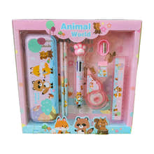 8-Piece Deluxe Stationery Set Gift Box Pens, Pencils, Ruler, Eraser, Pencil Case - Pink Animals