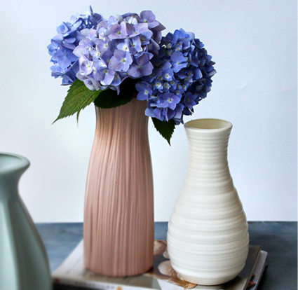 Flower Vase Ceramic Look Plastic Vase (Pink)