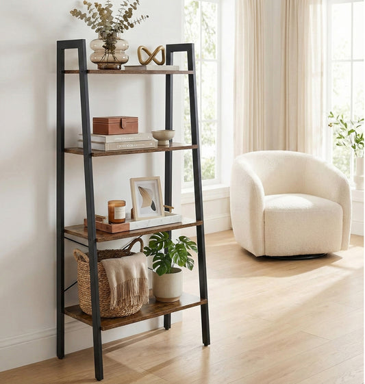 Elevate Rustic Wood & Metal 4-Tier Ladder Shelf Bookcase Storage Organizer