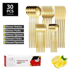 30PC Stainless Steel Cutlery Set Knife Fork Spoon Kitchen Tableware (Gold)
