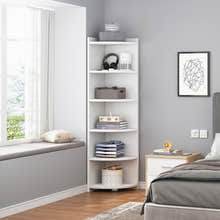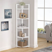 Inspire 6 Tier Large Stylish Wooden Corner Shelf Unit (White)
