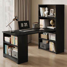 Varossa's Organizer Combination Workstation Computer Desk with 6 Storage Shelves (Black Wood)