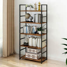 5 Tier Multifunction Heavy Duty Bookcase Rustic Wood & Steel Storage Shelf Organizer