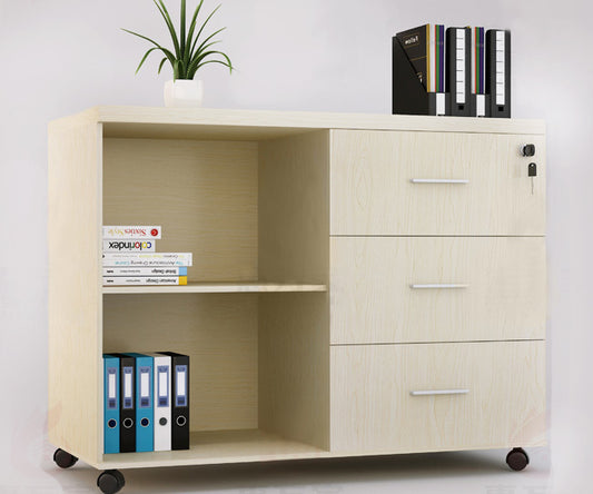 Vibe 3 Drawer and Shelf Utility Side Table with Wheels (White Oak)