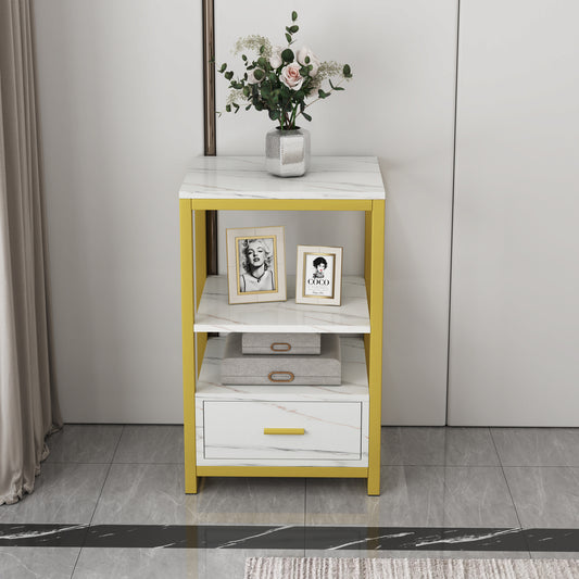 Synergy Luxury Marble Look Side Table Nightstand (White)