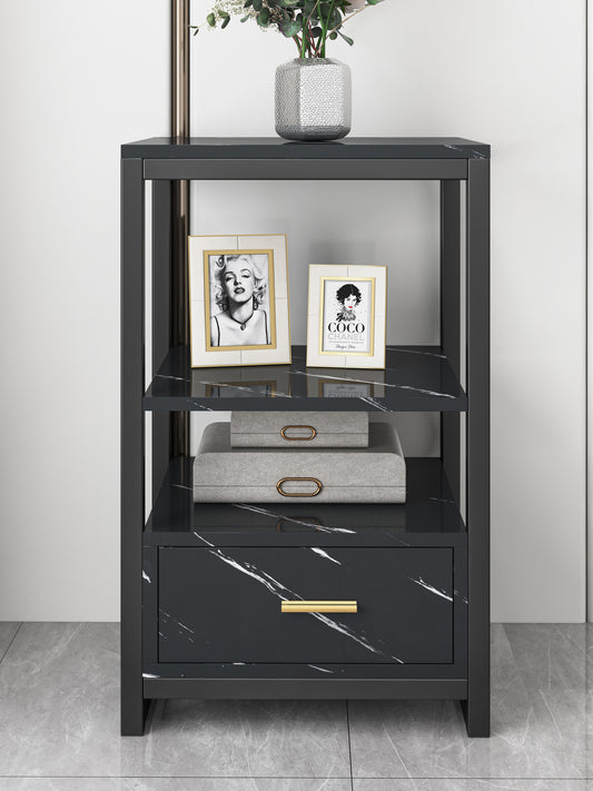 Synergy Luxury Marble Look Side Table Magazine Shelf (Black)